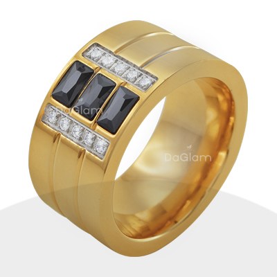 Anillo de acero con aplicación de 2 circones grandes y 4 circones pequeños color blanco
