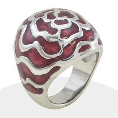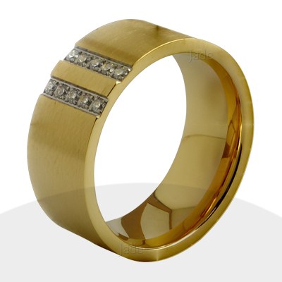 Anillo de acero pulido/satinado combinado con esmalte dorado y aplicación de 3 circones blancos
