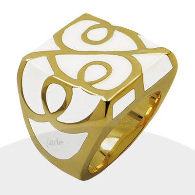 Anillo de acero pulido con diseño de círculos esmaltados en rojo