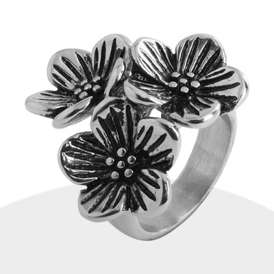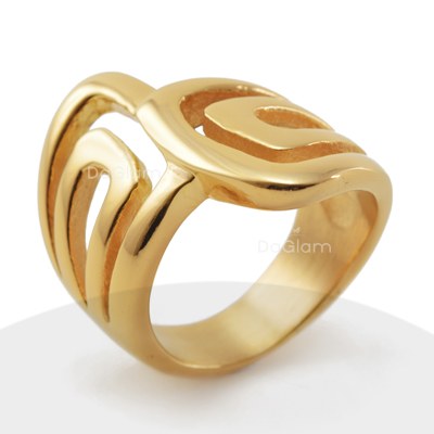 Anillo de acero pulido cuadrado con diseño y esmaltado en calipso