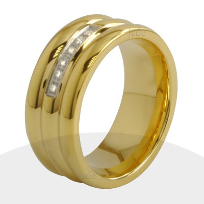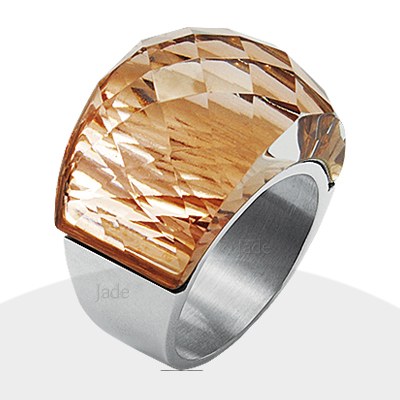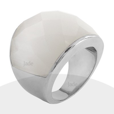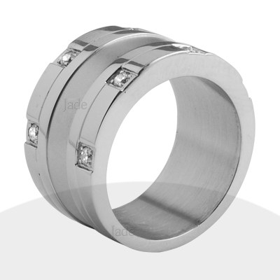 Anillo de acero macizo con piedra tipo ojo de gato color morado
