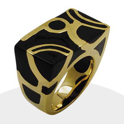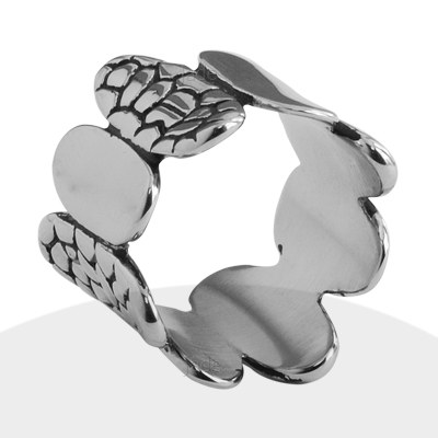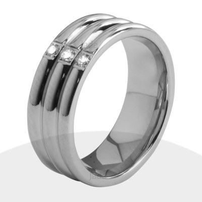 Anillo de acero pulido con aplicación de 12 circones blancos y 3 circones azules