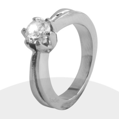 Anillo de acero satinado forma cóncava estilo argolla de compromiso con/sin circones