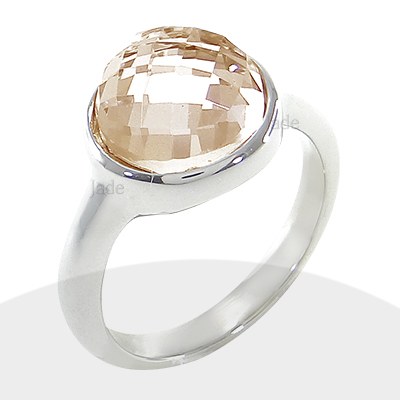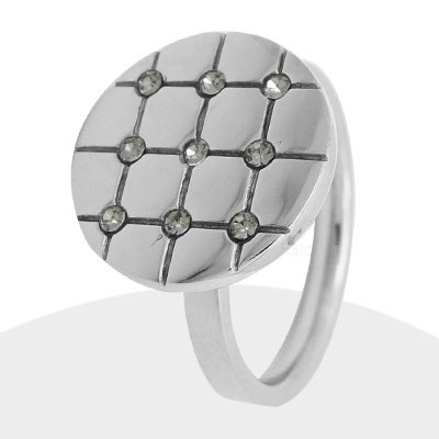 Anillo de acero pulido con aplicación de 6 circones blancos