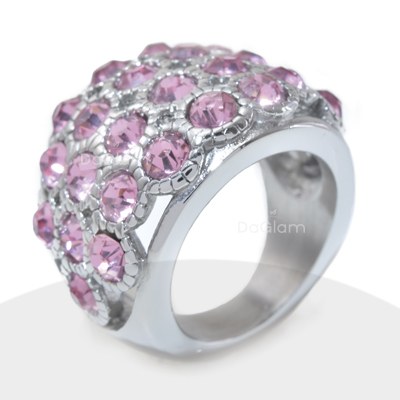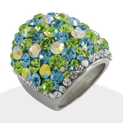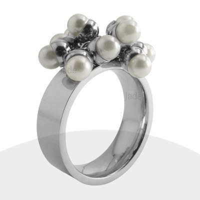 Anillo de acero pulido/satinado con aplicación de 10 circones blancos