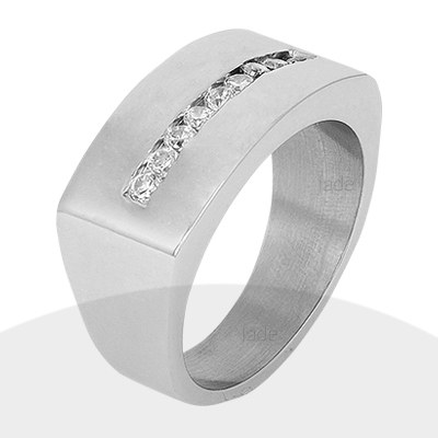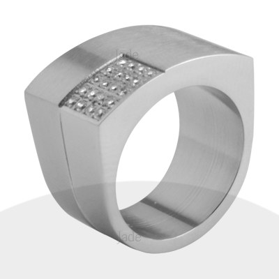 Anillo de acero satinado con aplicación de 18 circones blancos