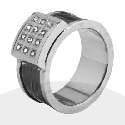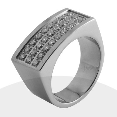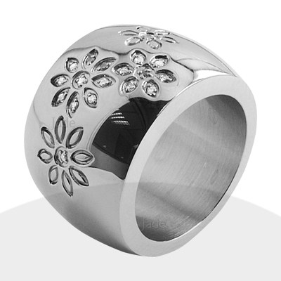 Anillo de acero pulido estilo argolla de compromiso con/sin circones blancos,