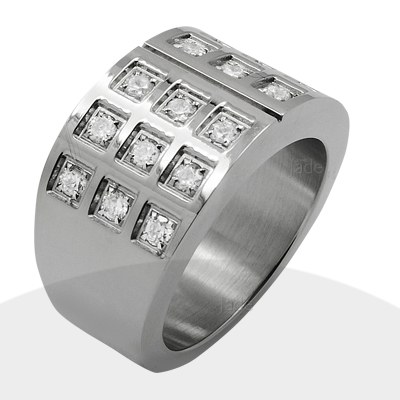 Anillo de acero pulido/satinado con aplicación de 32 circones blancos