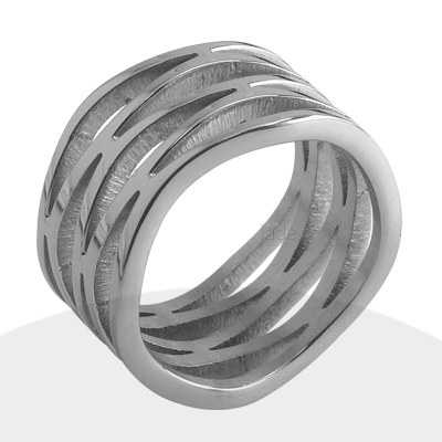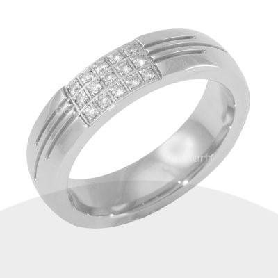 Anillo de acero satinado estilo argolla de compromiso sin circón blanco