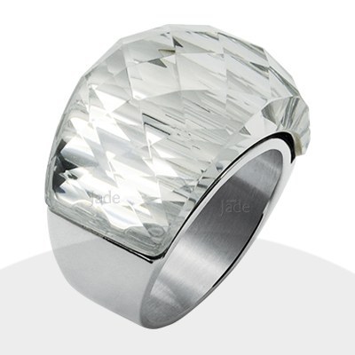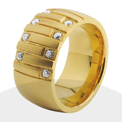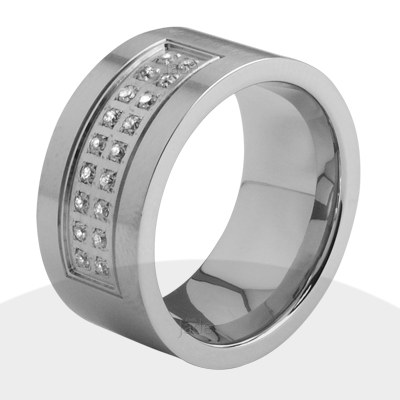 Anillo de acero satinado estilo argolla de compromiso con circón blanco
