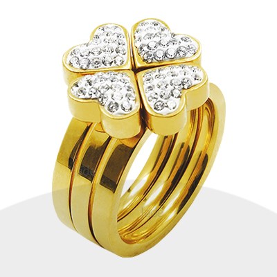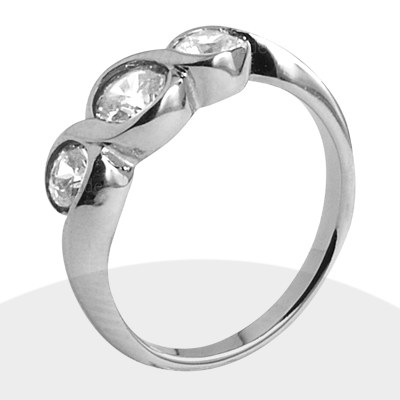 Anillo de acero pulido/satinado estilo argolla de compromiso con circones blancos,