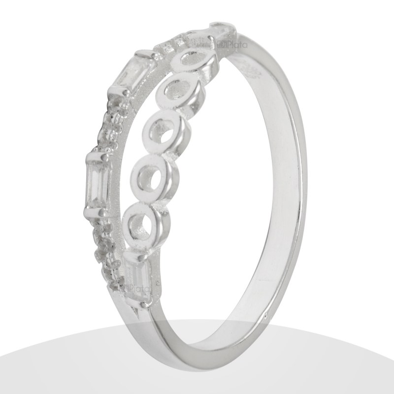 PA1024Anillo diseño doble línea con circones Plata 925$ 9.489