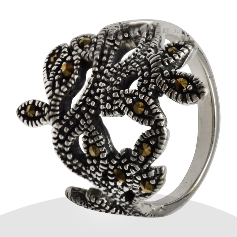 PA0925Anillo marquesita envejecido hojas Plata 925$ 9.390