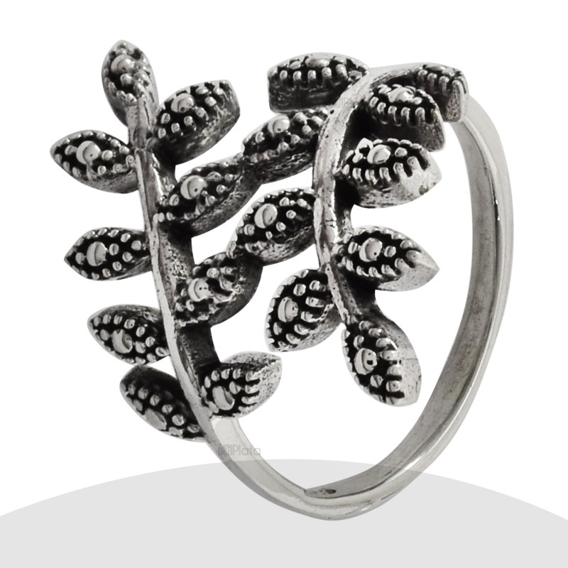 PA0896Anillo envejecido hojas Plata 925$ 9.360