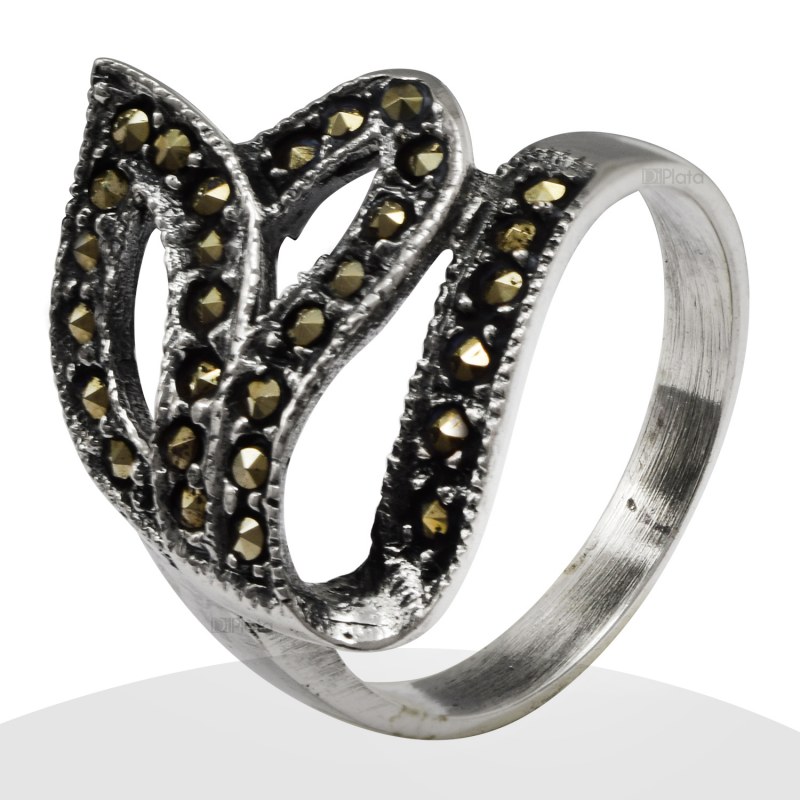 PA0925Anillo marquesita envejecido hojas Plata 925$ 9.390