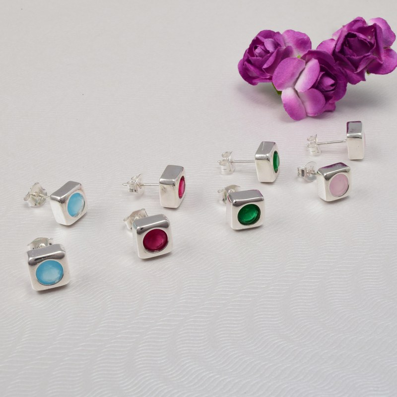 Aro cuadrado piedra natural en colores Plata 925 - PR0277