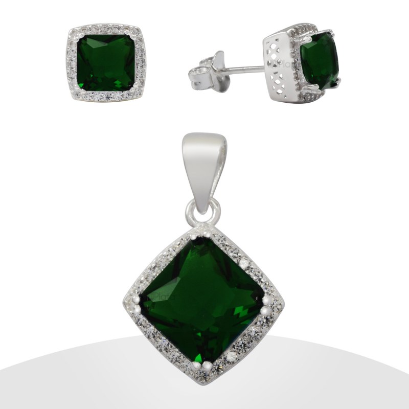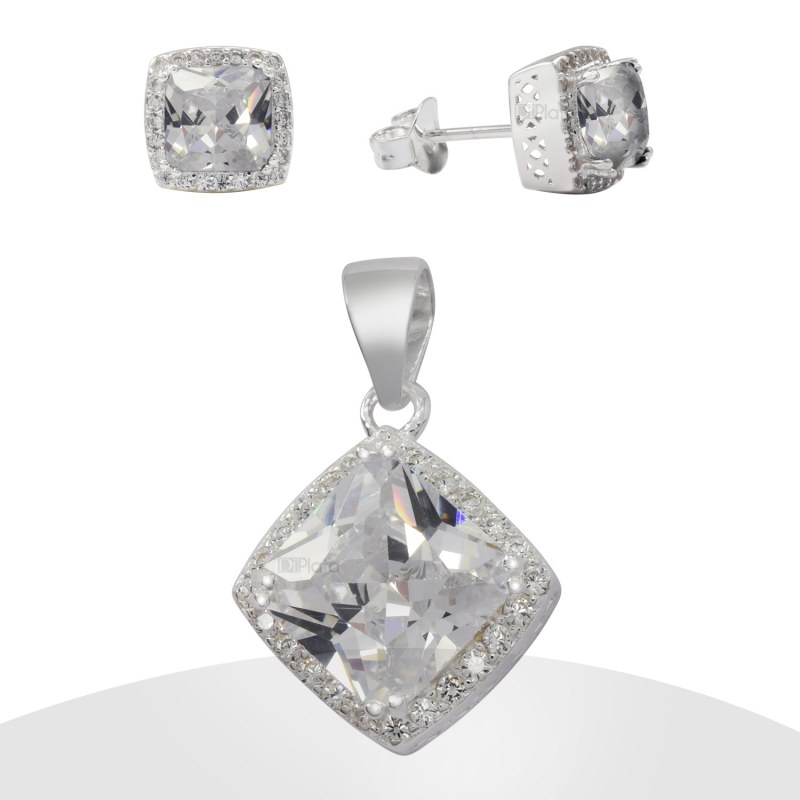 Collar cuadrado con circón y micro circones plata 925 - PS0271